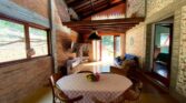 As acomodações do Sítio Salamandra foram pensadas para integrar o hóspede à natureza sem abrir mão do conforto. As suítes contam com banheiro privativo, varandas com vista para as montanhas e, em algumas unidades, cozinha privativa.