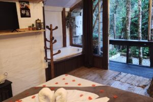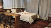 Esses detalhes fazem com que a estadia seja prática e confortável, atendendo tanto turistas quanto viajantes que buscam um refúgio tranquilo na natureza.