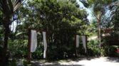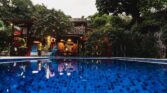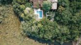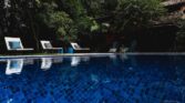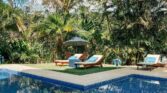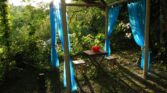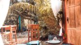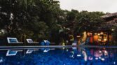 Um espaço rodeado por árvores, ideal para quem deseja se refrescar e aproveitar o clima tropical de Trancoso.