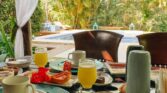 Servido diariamente com ingredientes frescos, frutas tropicais, bolos caseiros e delícias da culinária baiana — tudo preparado com muito carinho.