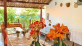 O destaque vai para o café da manhã artesanal, preparado com frutas frescas, pães caseiros e produtos locais, servidos em um espaço rodeado pelo verde e pela brisa do mar.