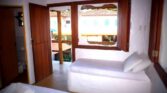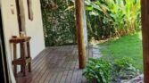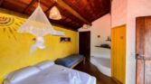 A pousada oferece quartos confortáveis e bem equipados, todos com banheiro privativo, ar-condicionado e varanda ou pátio com vista para o mar ou para o jardim. O ambiente é tranquilo, rodeado por muito verde, o que proporciona momentos de relaxamento total.