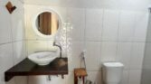 Situada a apenas 200 metros da praia e cercada por um lindo jardim de mil metros quadrados com árvores nativas, o ambiente é um convite ao descanso. Redes, sombras e o som dos pássaros tornam o clima ainda mais acolhedor.