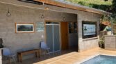 – Nossa área de lazer é composta de uma piscina de 8mx4m climatizada com aquecimento solar, no inverno a temperatura da água fica entre 25 a 28 graus. Nessa área temos Bangalô, Quiosque, Sauna Úmida, e um espaço tipo bar com Geladeira disponível para os hóspedes, mas não fornecemos bebidas. Essa também área dá acesso a um riacho de água corrente sobre uma laje de pedra.