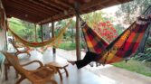 – Próximo da casa de locação temos um Deck com acesso à Cachoeira, ideal para práticas de Yoga e contemplação da natureza, com barulho de queda de agua. Quiosque com bancos e mesa para momentos de confraternizações estão disponíveis.