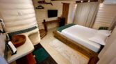 Algumas acomodações incluem varanda ou vista para o jardim, criando uma experiência ainda mais agradável.