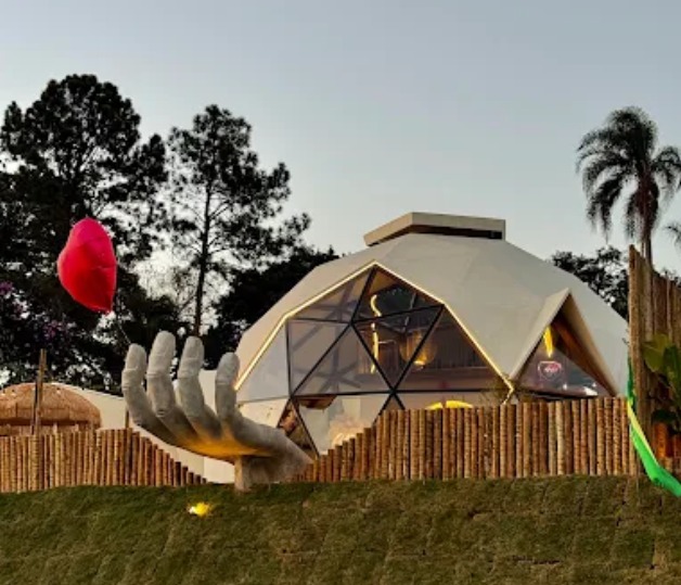 Viva a essência da Grécia no Greek Dome, um refúgio único de luxo. Relaxe na jacuzzi privativa, refresque-se na piscina ou aproveite momentos especiais no firepit. Encante-se com a Fonte dos Desejos Grega e a deslumbrante **Mão de Deus**, uma obra de arte exclusiva do renomado artista brasileiro Antero. Com redário, cozinha completa e uma decoração inspirada no luxo e na beleza grega, este é o lugar perfeito para experiências inesquecíveis. Cesta de café da manhã inclusa a partir de 2 diárias.